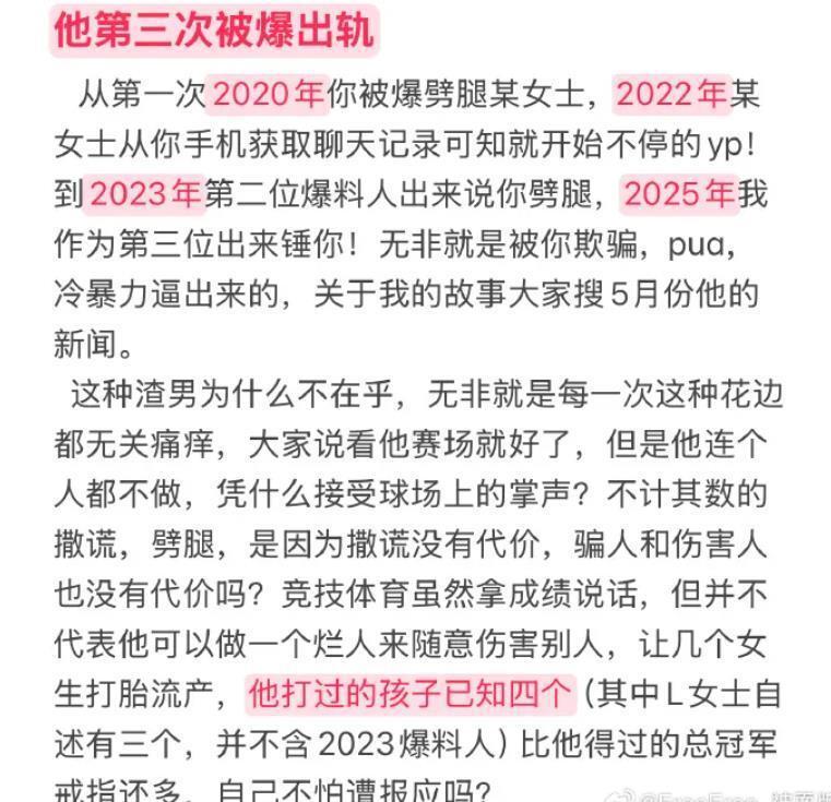据悉,徐杰最近几年女友不断,并且多次劈腿,出轨成了家常便饭,甚至还让多个女生打胎,私生活非常混乱。另外,虽然是广东队的明星球员,不过徐杰的工资水平并不高,目前还是拿着B类合同,并且签下5年的长约。而因为花销偏大,徐杰还在捞偏门,涉足赌博等,从爆料里得知有赌球的习惯。
